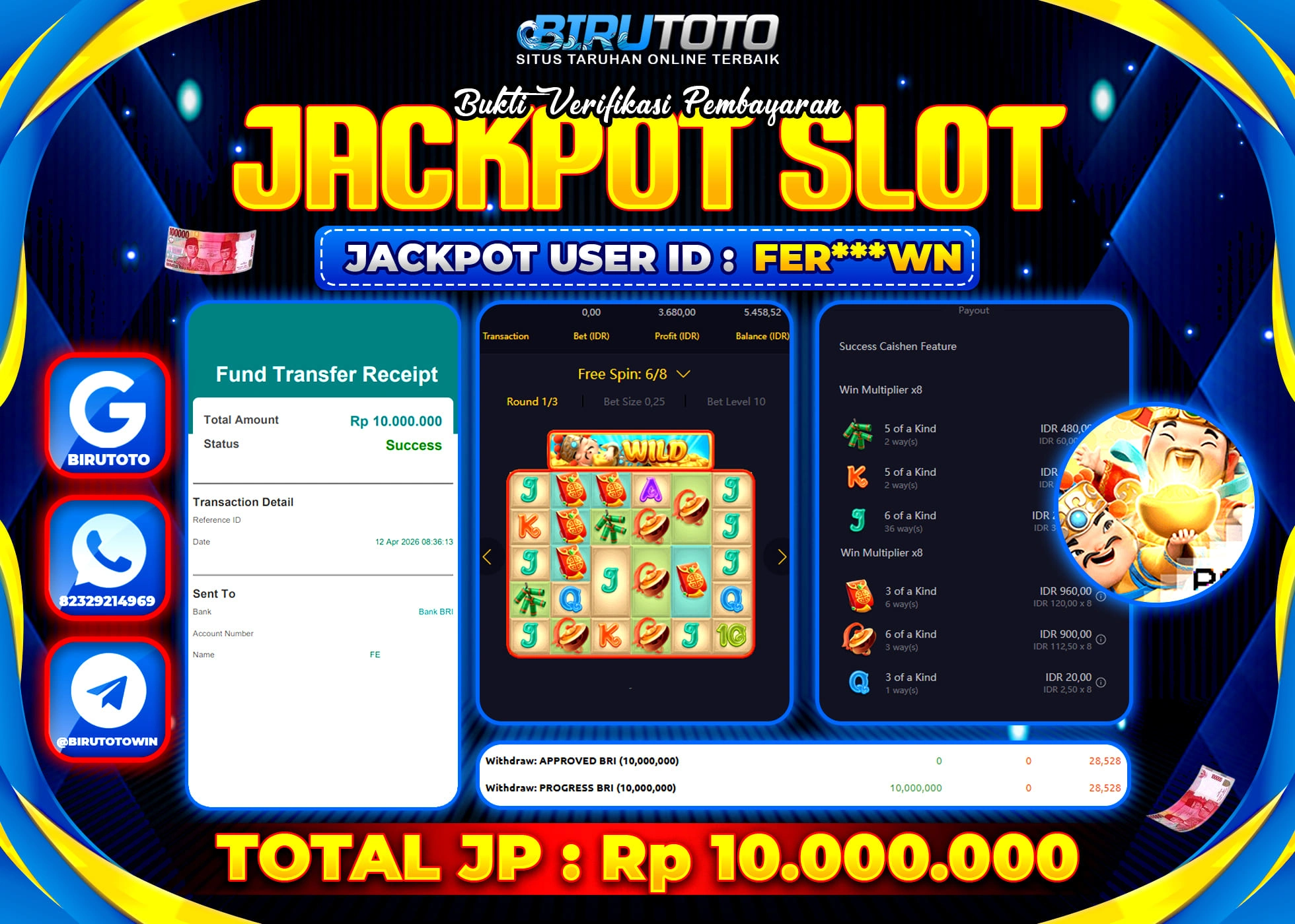 BIRUTOTO JACKPOT SLOT CAI SHEN WINS Rp.10.000.000 LUNAS
