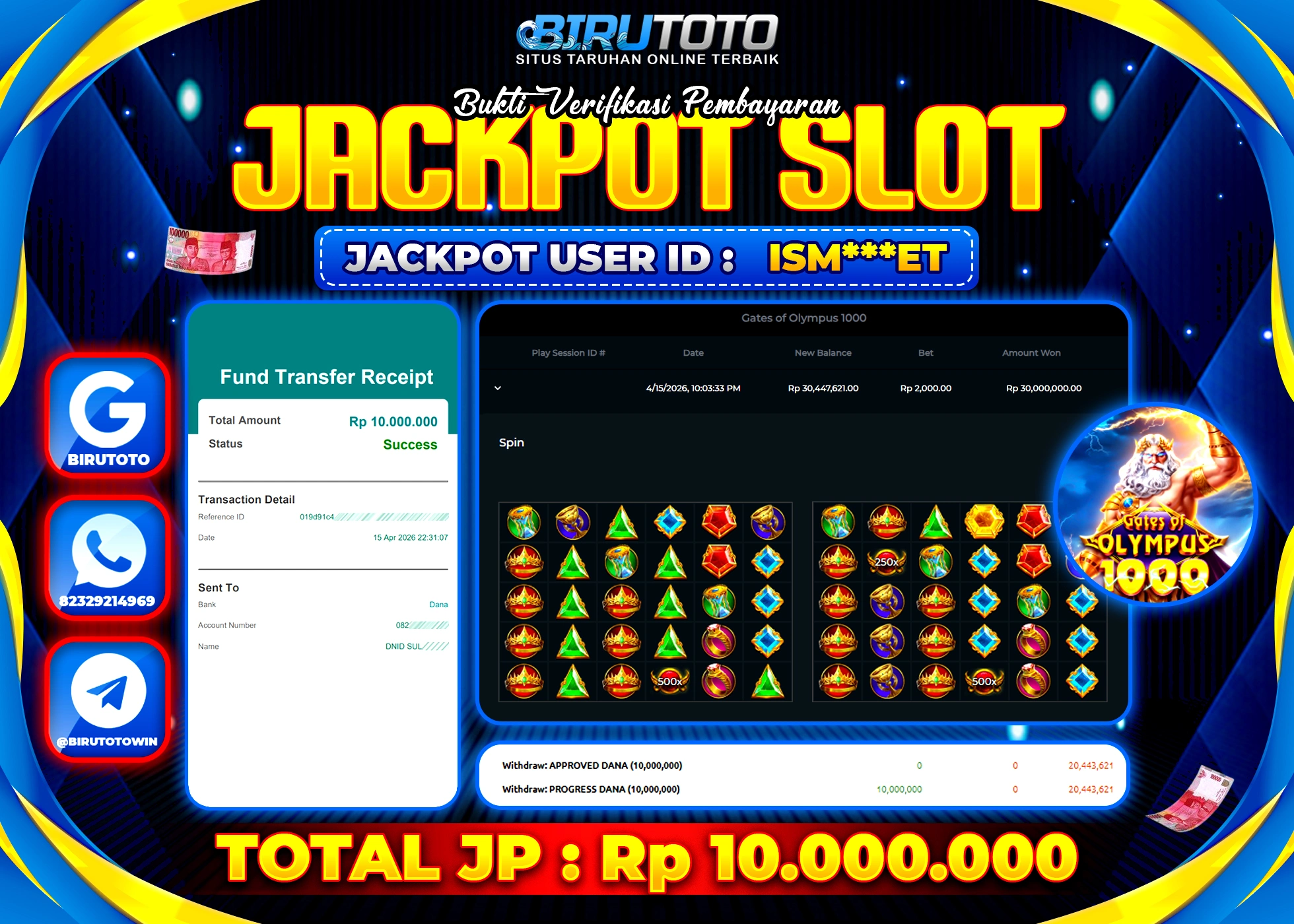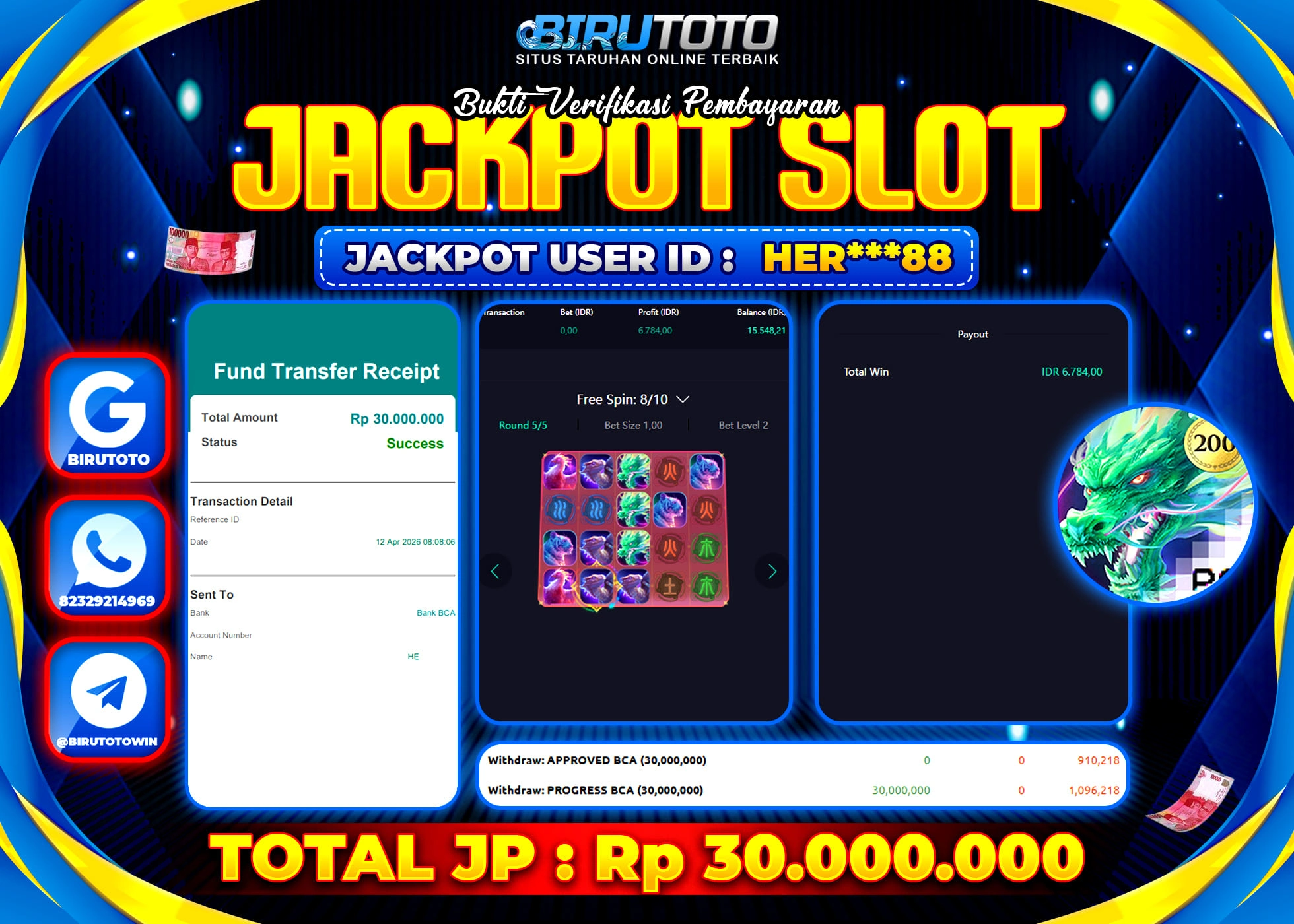 BIRUTOTO JACKPOT SLOT MAH Rp.30.000.000 LUNAS