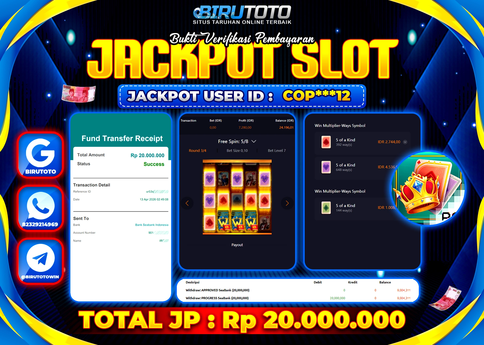 BIRUTOTO JACKPOT SLOT POKER KINGDOM WIN Rp.20.000.000 LUNAS