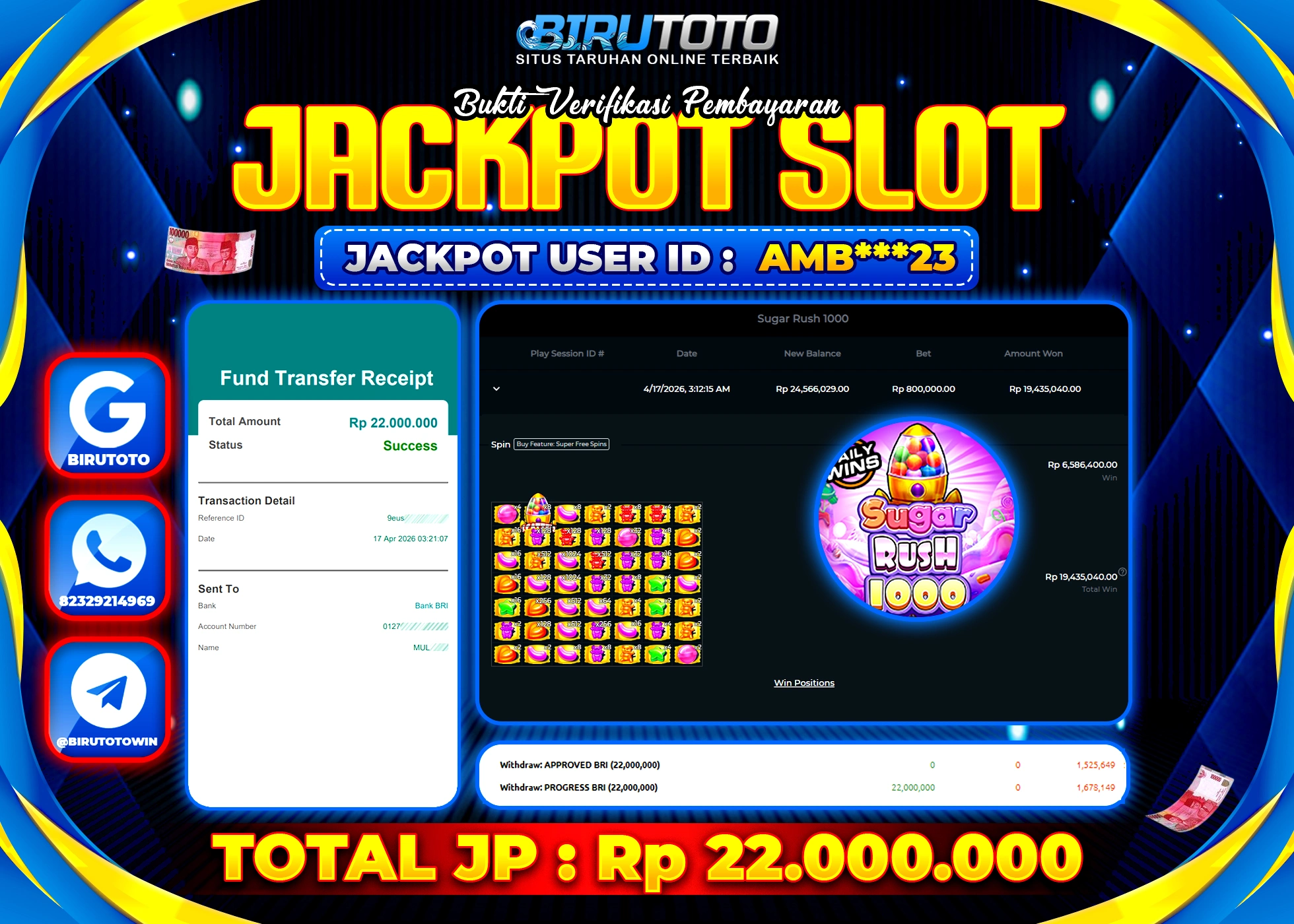 BIRUTOTO JACKPOT SLOT SUGAR RUSH 1000 Rp.22.000.000 LUNAS