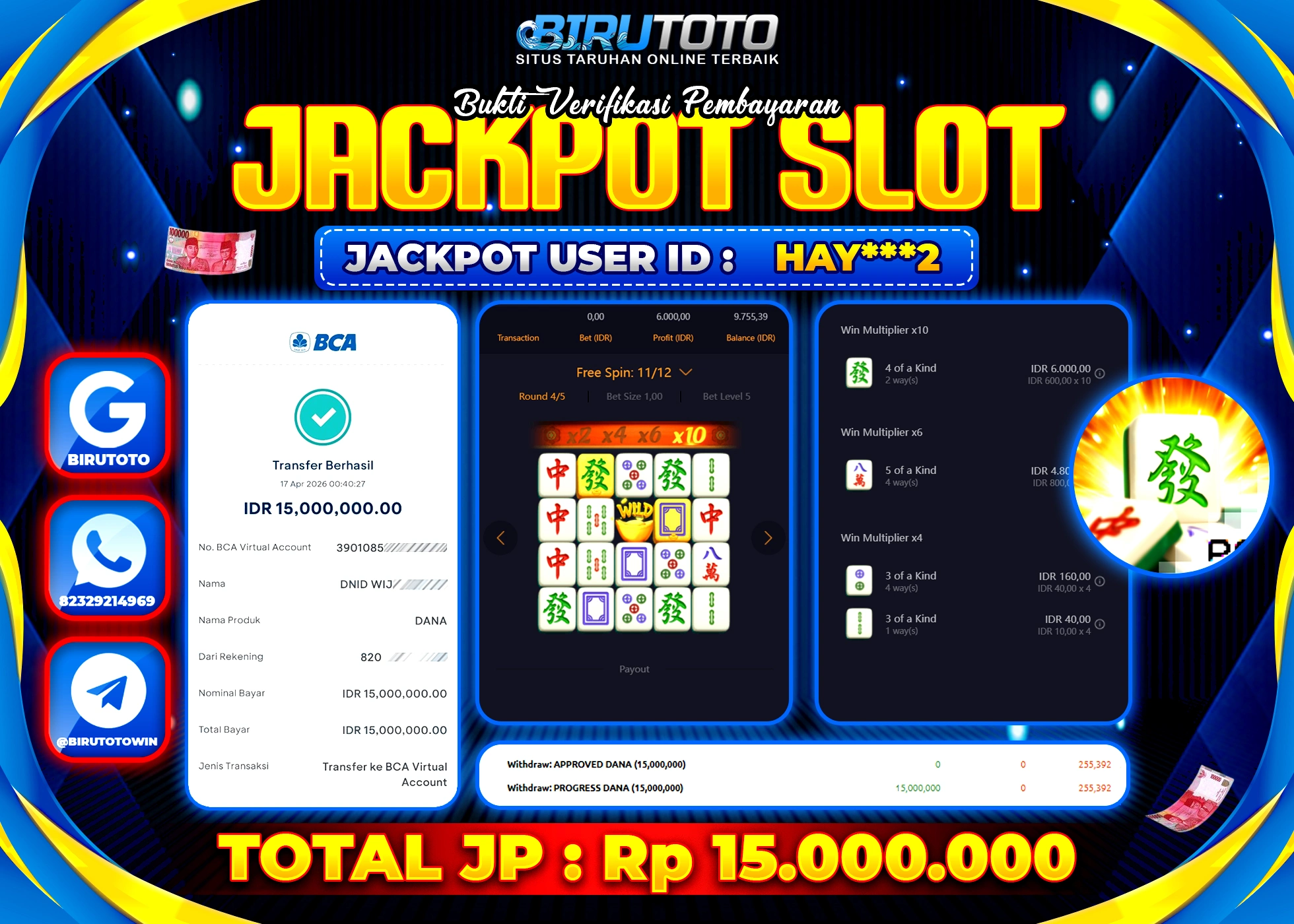 BIRUTOTO JACKPOT SLOT MAHJONG WAYS Rp.15.000.000 LUNAS