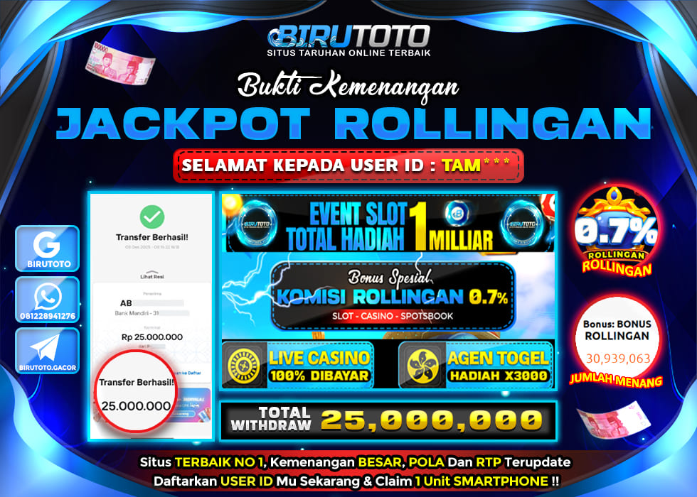 BIRUTOTO JACKPOT BONUS ROLLINGAN Rp.25.000.000 LUNAS