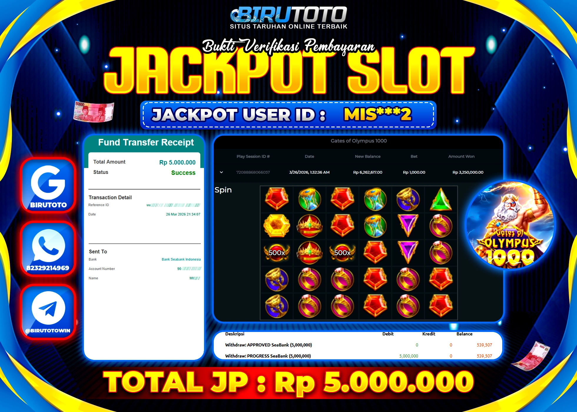 BIRUTOTO JACKPOT SLOT GATES OF OLYMPUS 1000 Rp.5.000.000 LUNAS