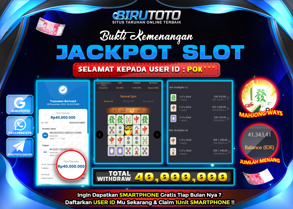 BIRUTOTO JACKPOT SLOT MAHJONG WAYS Rp.40.000.000 LUNAS