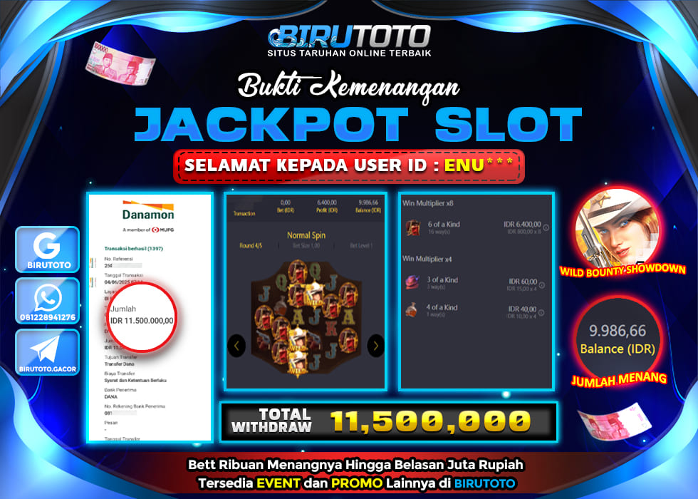 Selamat Kepada Member BIRUTOTO EN**** Telah Jackpot Di SLOT WILD BOUNTY SHOWDOWN