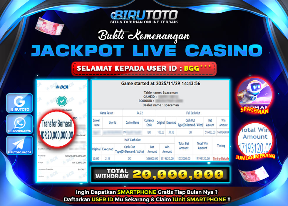 BIRUTOTO JACKPOT LIVE CASINO - SPACEMAN Rp.20.000.000 LUNAS
