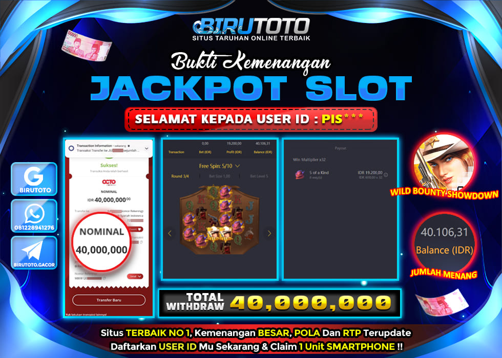 Selamat Kepada Member BIRUTOTO HER***88 Telah Jackpot Di SLOT WILD BOUNTY SHOWDOWN