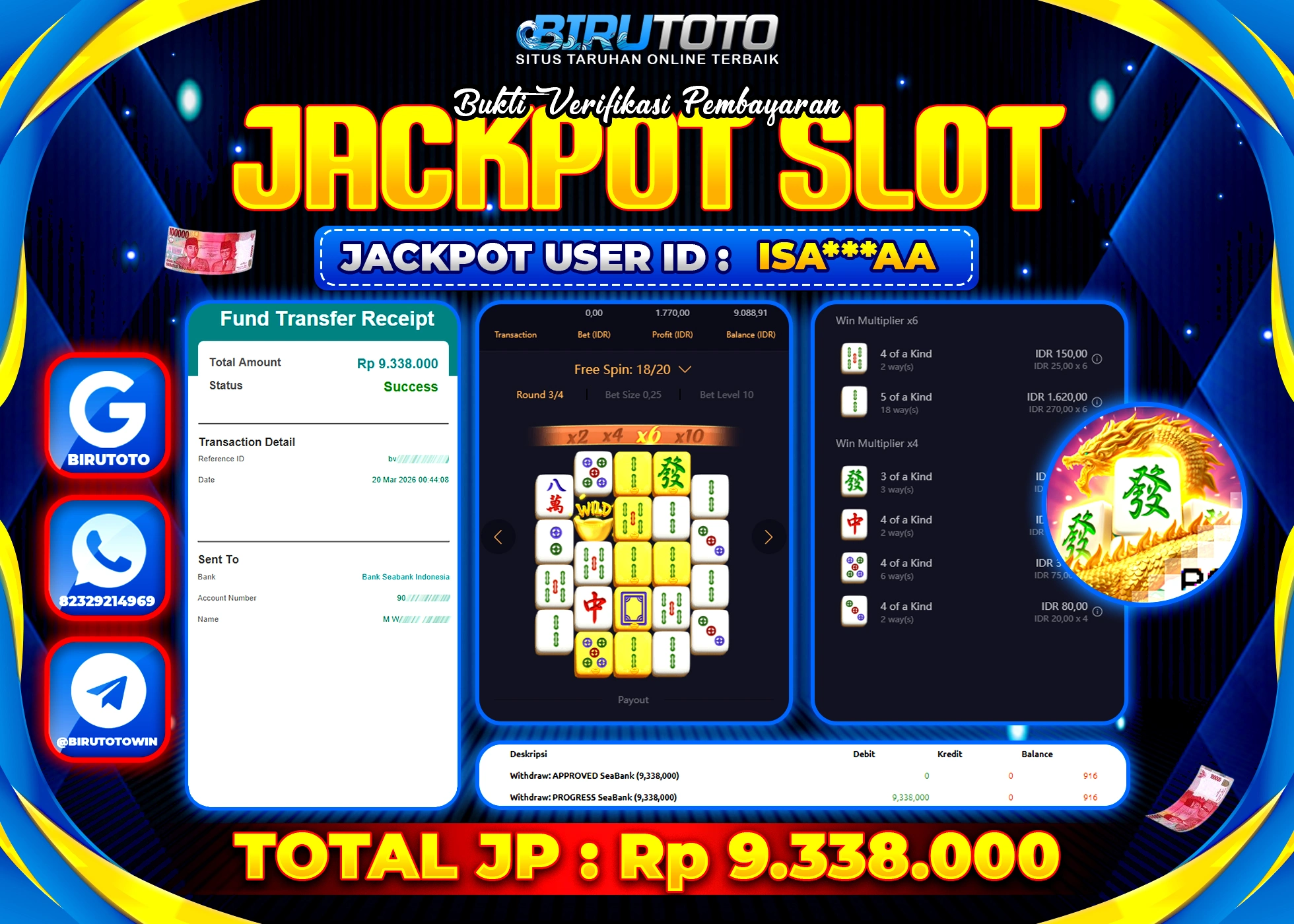 Selamat Kepada Member BIRUTOTO ISA***AA Telah Jackpot Di SLOT MAHJONG WAYS 2