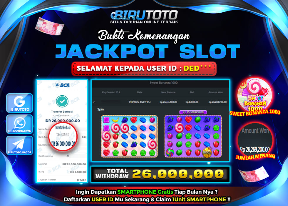 BIRUTOTO JACKPOT SLOT SWEET BONANZA 10000 Rp.26.000.000 LUNAS