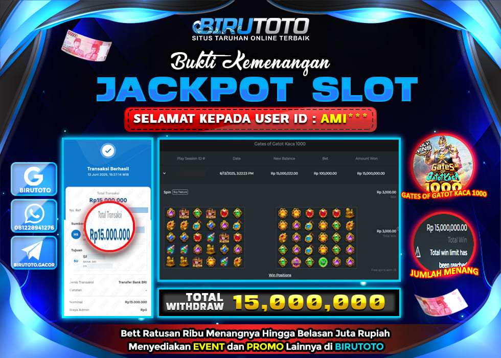 BIRUTOTO JACKPOT SLOT GATES OF GATOT KACA 1000 Rp.15.000.000 LUNAS