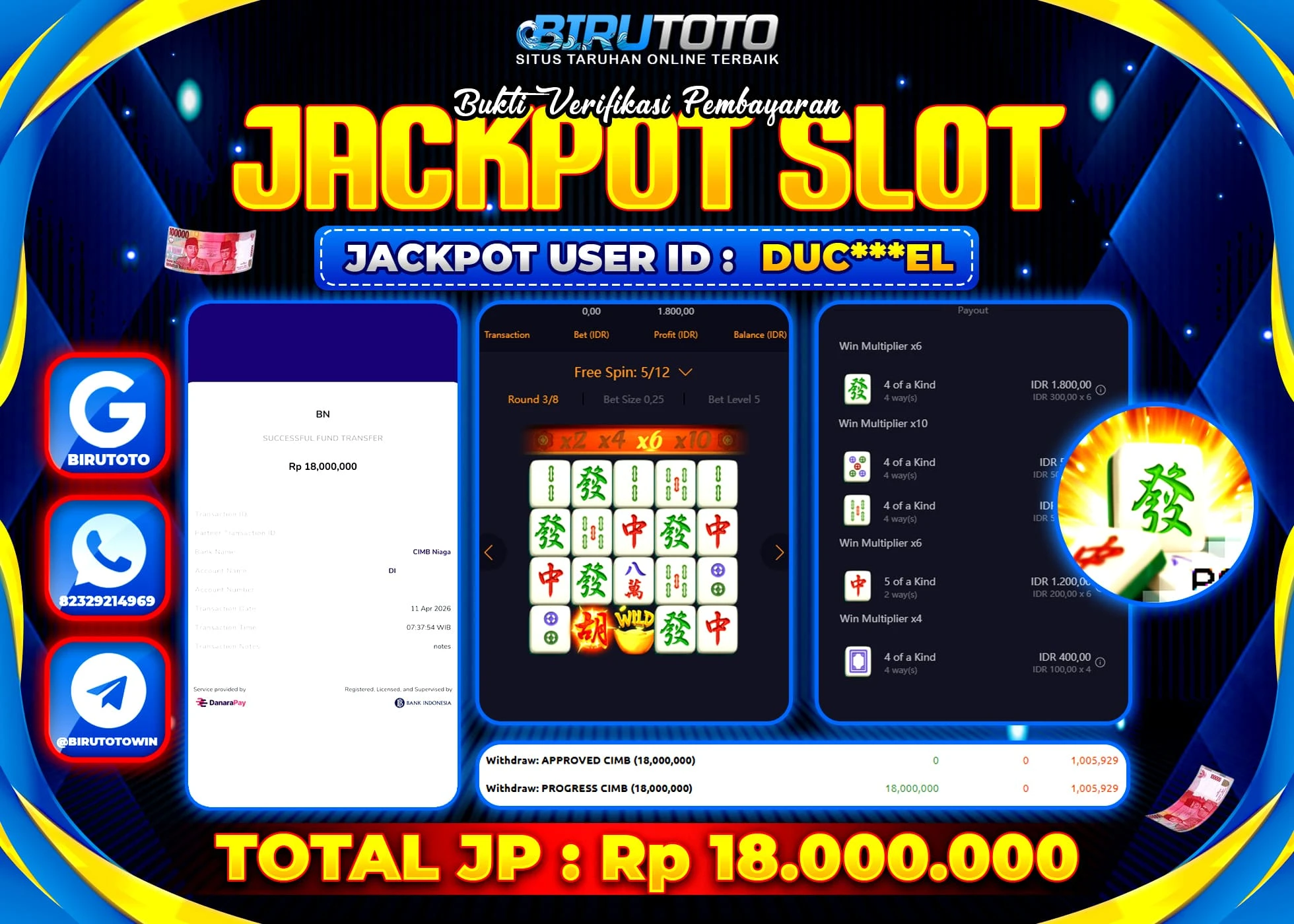 BIRUTOTO JACKPOT SLOT MAHJONG WAYS Rp.18.000.000 LUNAS