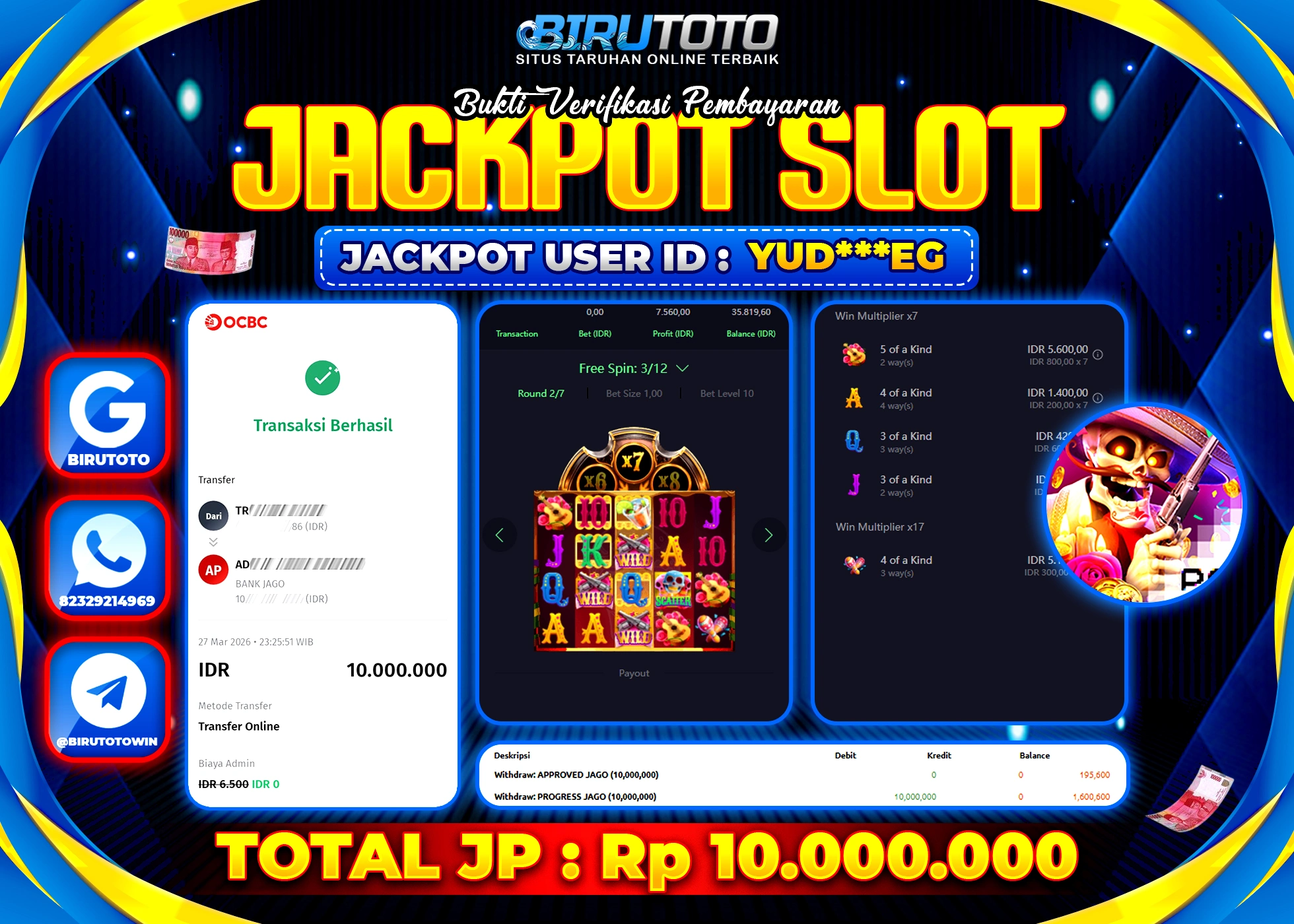 Selamat Kepada Member BIRUTOTO YUD***EG Telah Jackpot Di SLOT WILD BANDITO