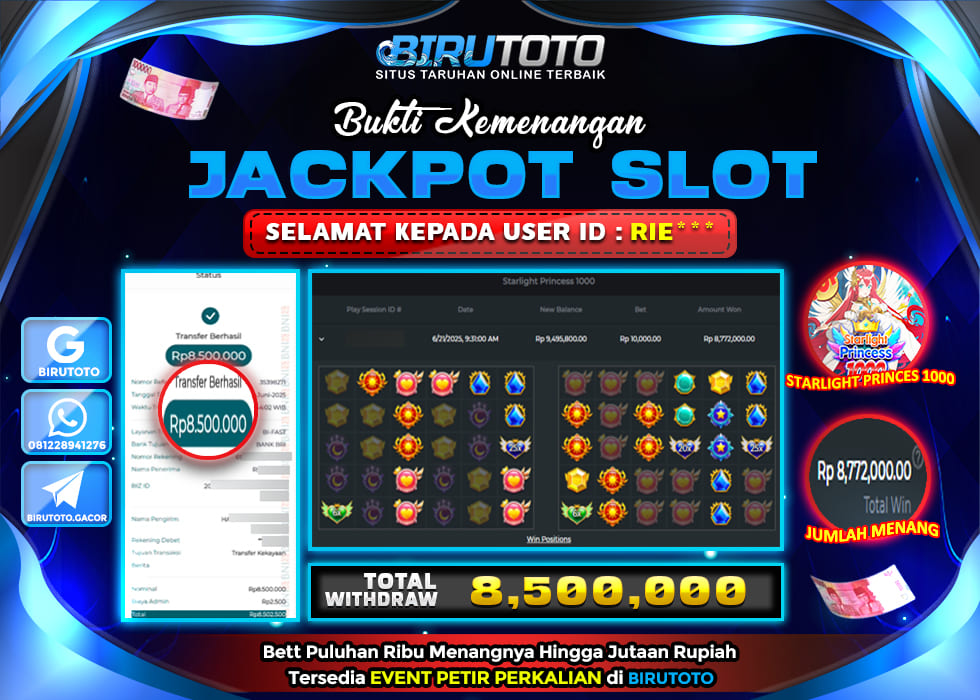 BIRUTOTO JACKPOT SLOT STARLIGHT PRINCESS 1000 Rp.8.500.000 LUNAS