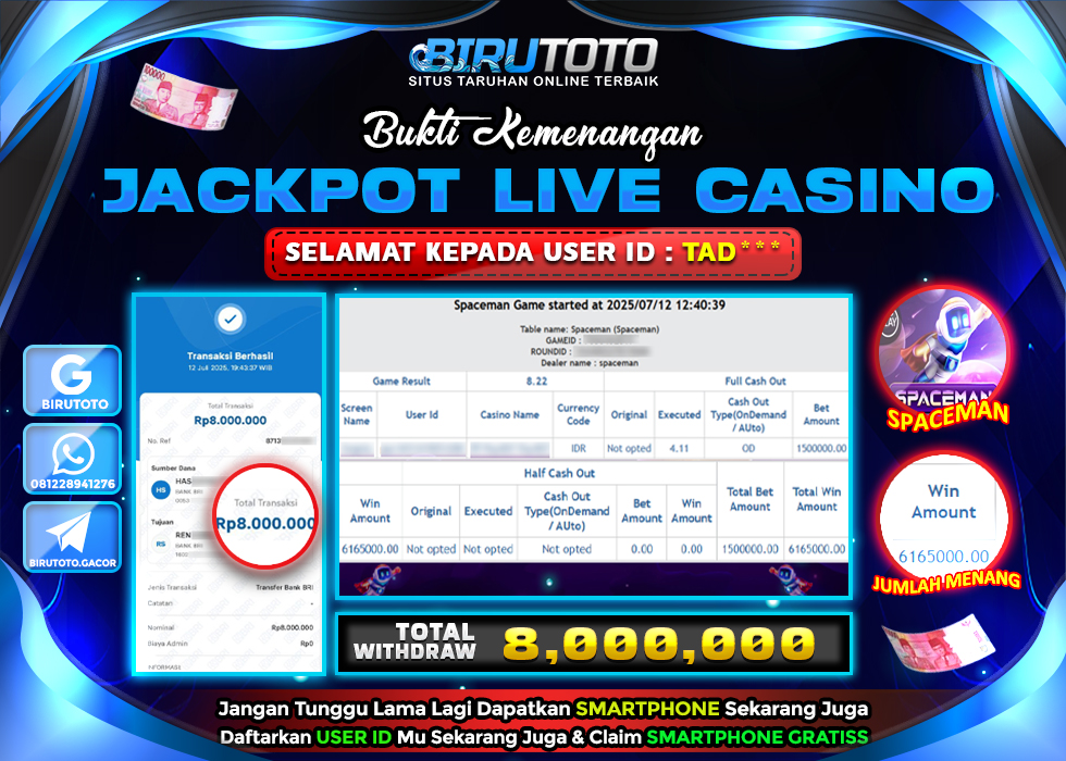 BIRUTOTO JACKPOT LIVE CASINO SPACEMAN Rp.8.000.000 LUNAS