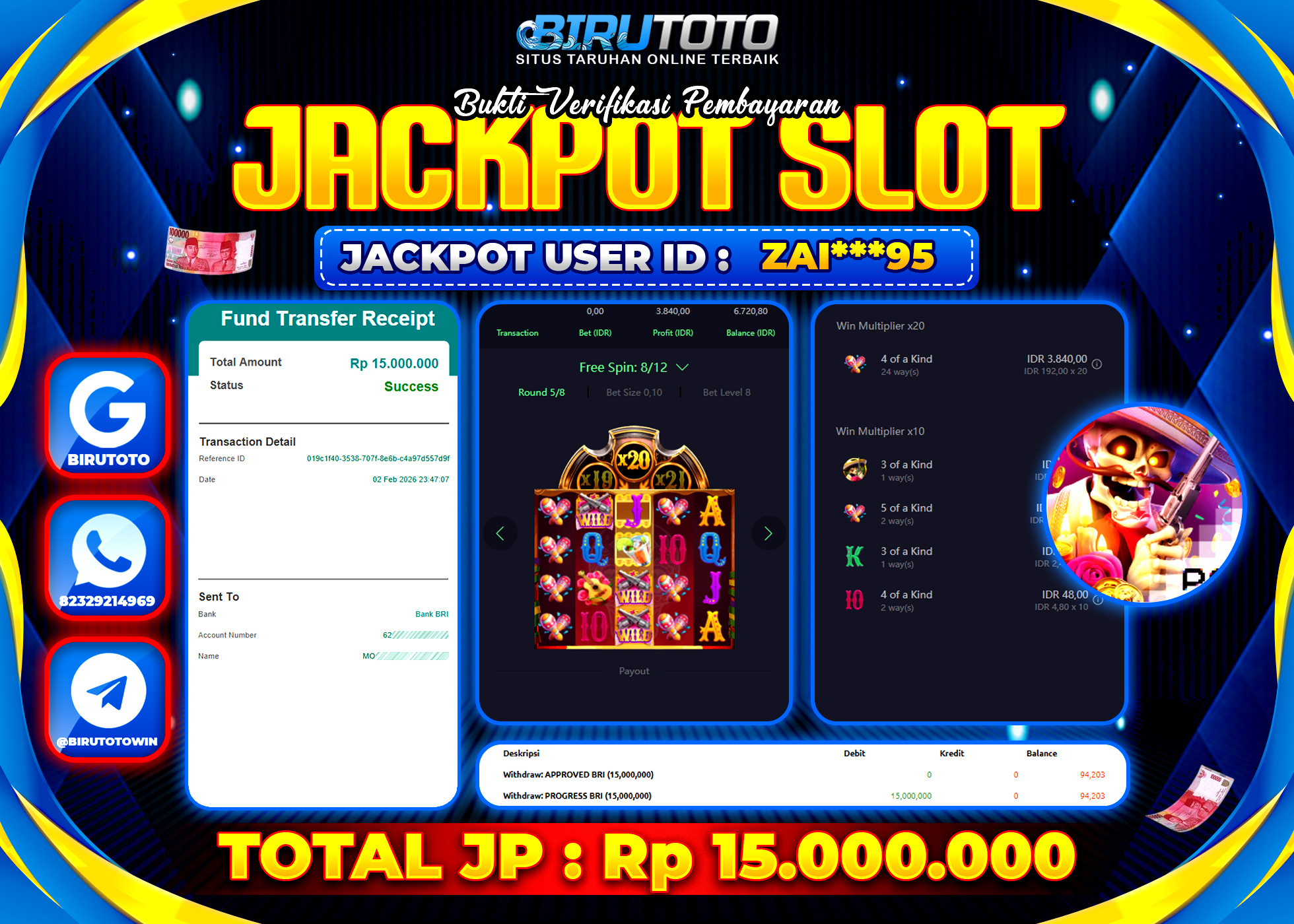 BIRUTOTO JACKPOT SLOT WILD BANDITO Rp.15.000.000 LUNAS