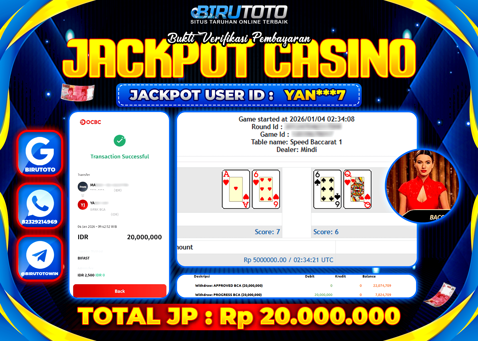BIRUTOTO JACKPOT LIVE CASINO BACCARAT Rp.20.000.000 LUNAS