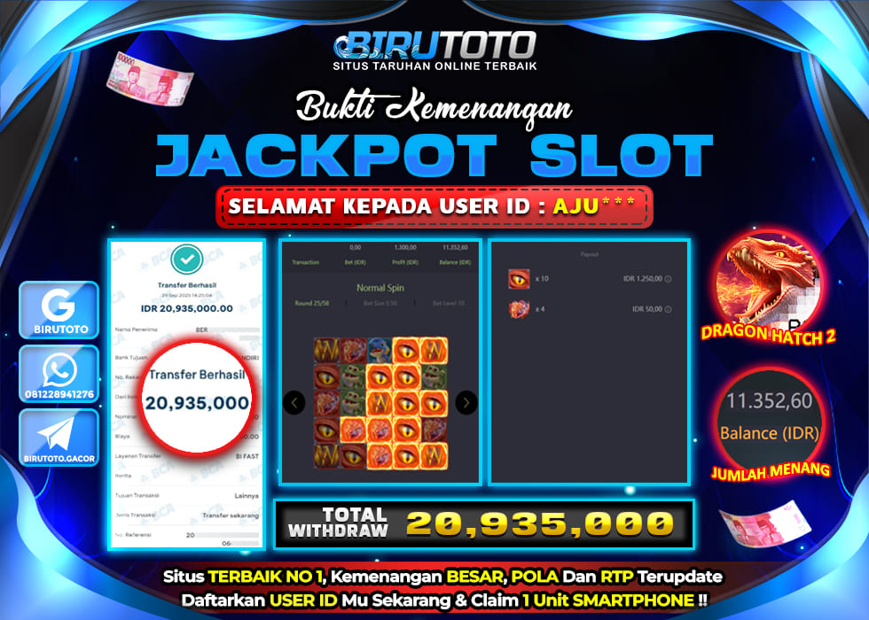 BIRUTOTO JACKPOT SLOT DRAGON HATCH 2 Rp.20.935.000 LUNAS