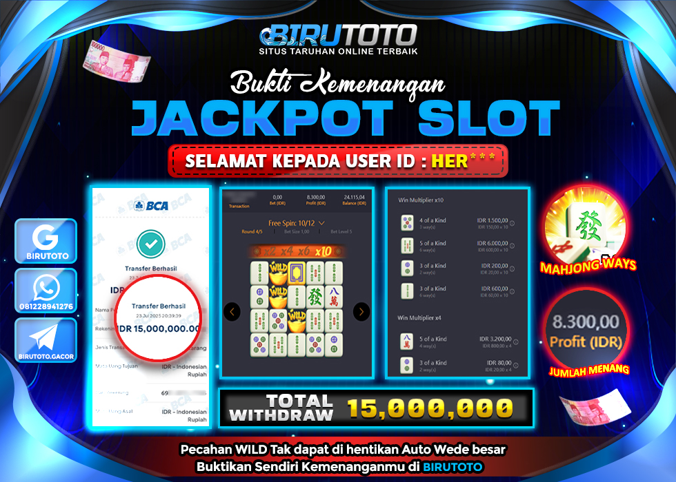 BIRUTOTO JACKPOT SLOT MAHJONG WAYS Rp.15.000.000 LUNAS