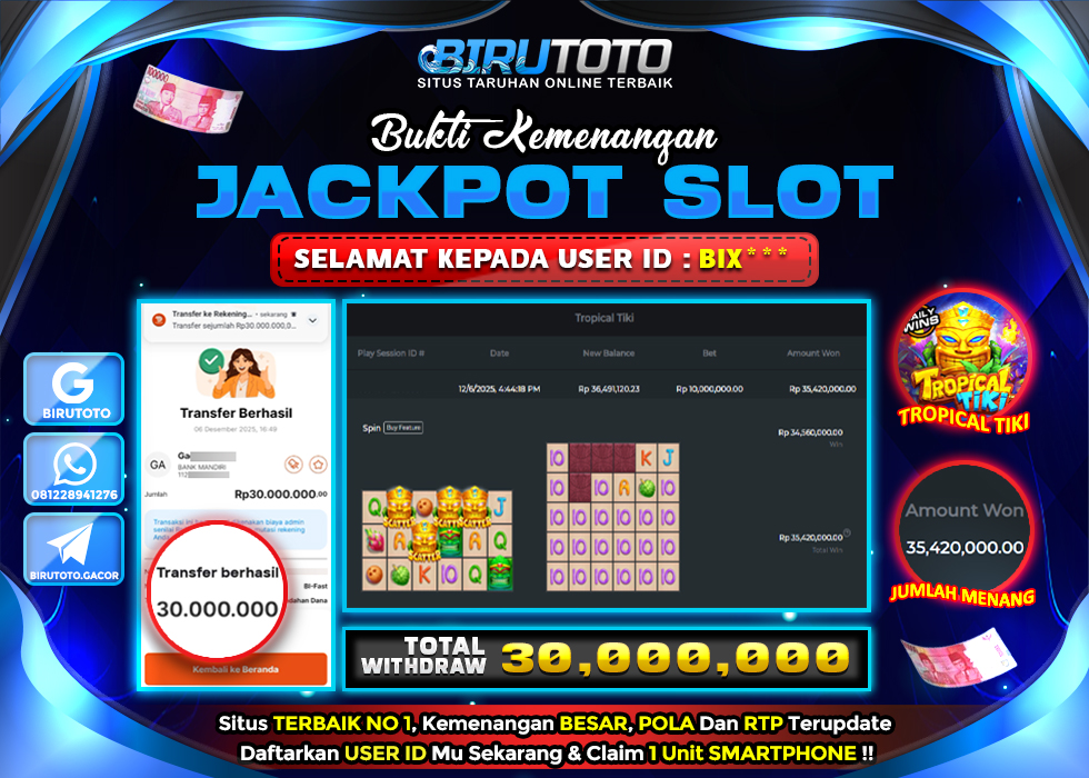 BIRUTOTO JACKPOT SLOT TROPICAL TIKI Rp.30.000.000 LUNAS