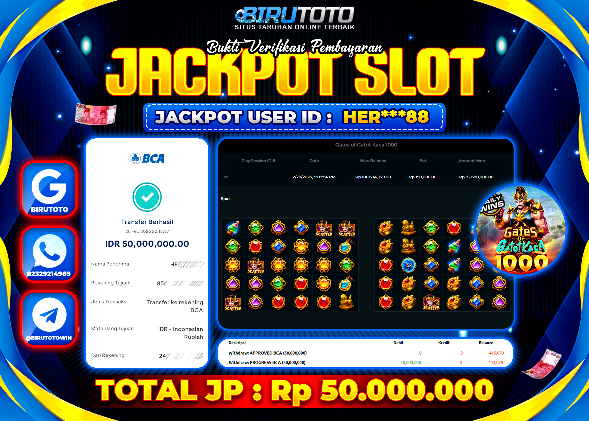 BIRUTOTO JACKPOT SLOT GATES OF GATOT KACA 1000 Rp.50.000.000 LUNAS