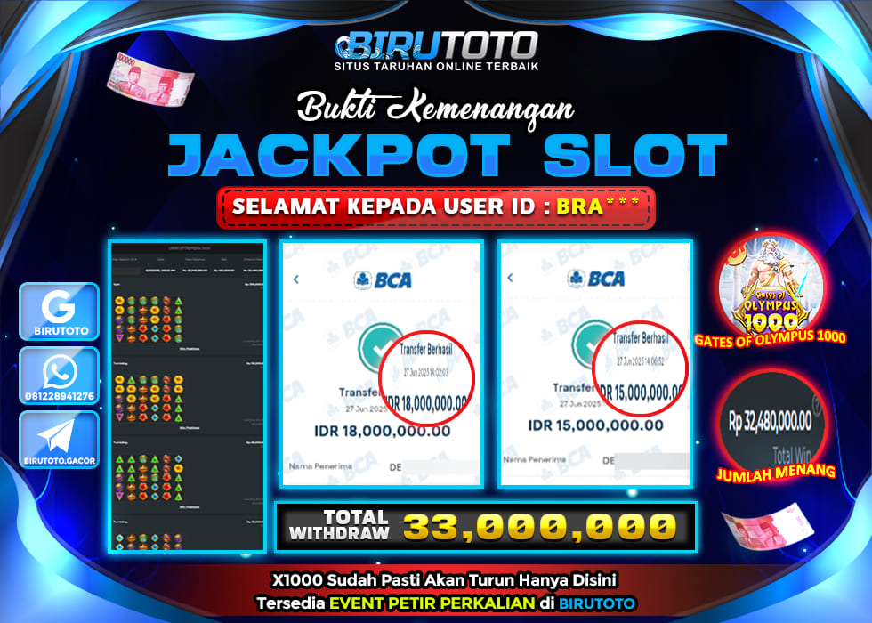 BIRUTOTO JACKPOT SLOT GATES OF OLYMPUS 1000 Rp.33.000.000 LUNAS