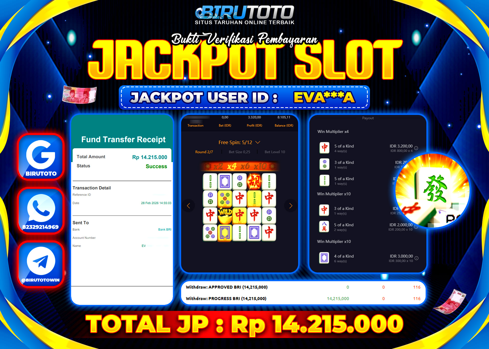 BIRUTOTO JACKPOT SLOT MAHJONG WAYS Rp.14.215.000 LUNAS
