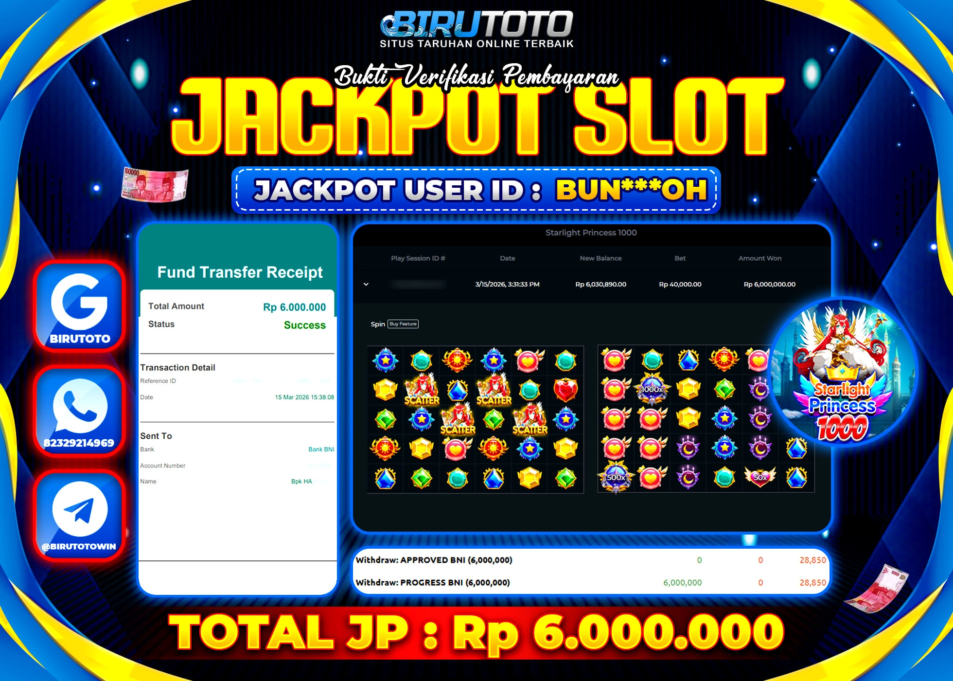 BIRUTOTO JACKPOT SLOT STARLIGHT PRINCESS 1000 Rp.6.000.000 LUNAS