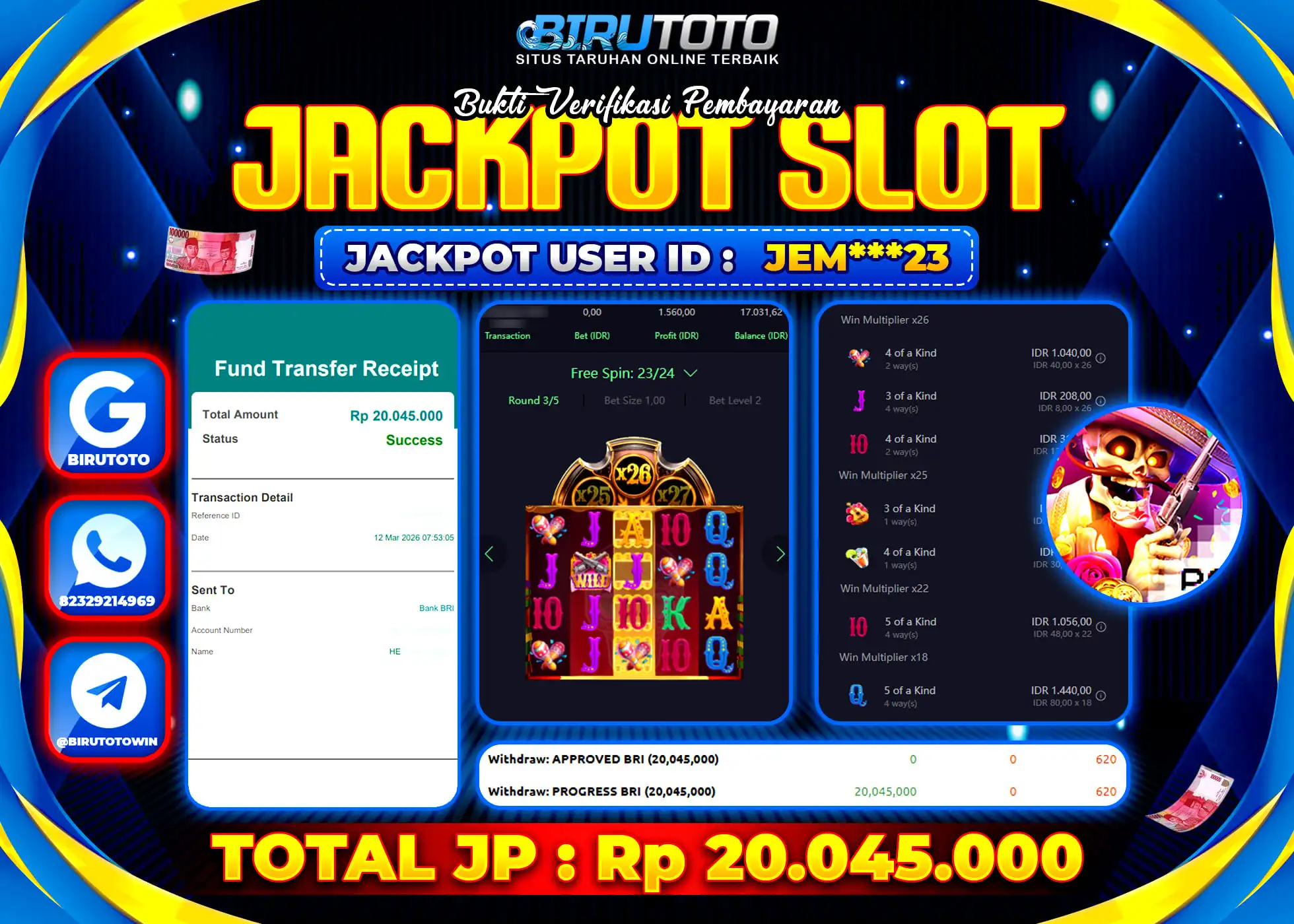 Selamat Kepada Member BIRUTOTO JEM***23 Telah Jackpot Di SLOT WILD BANDITO