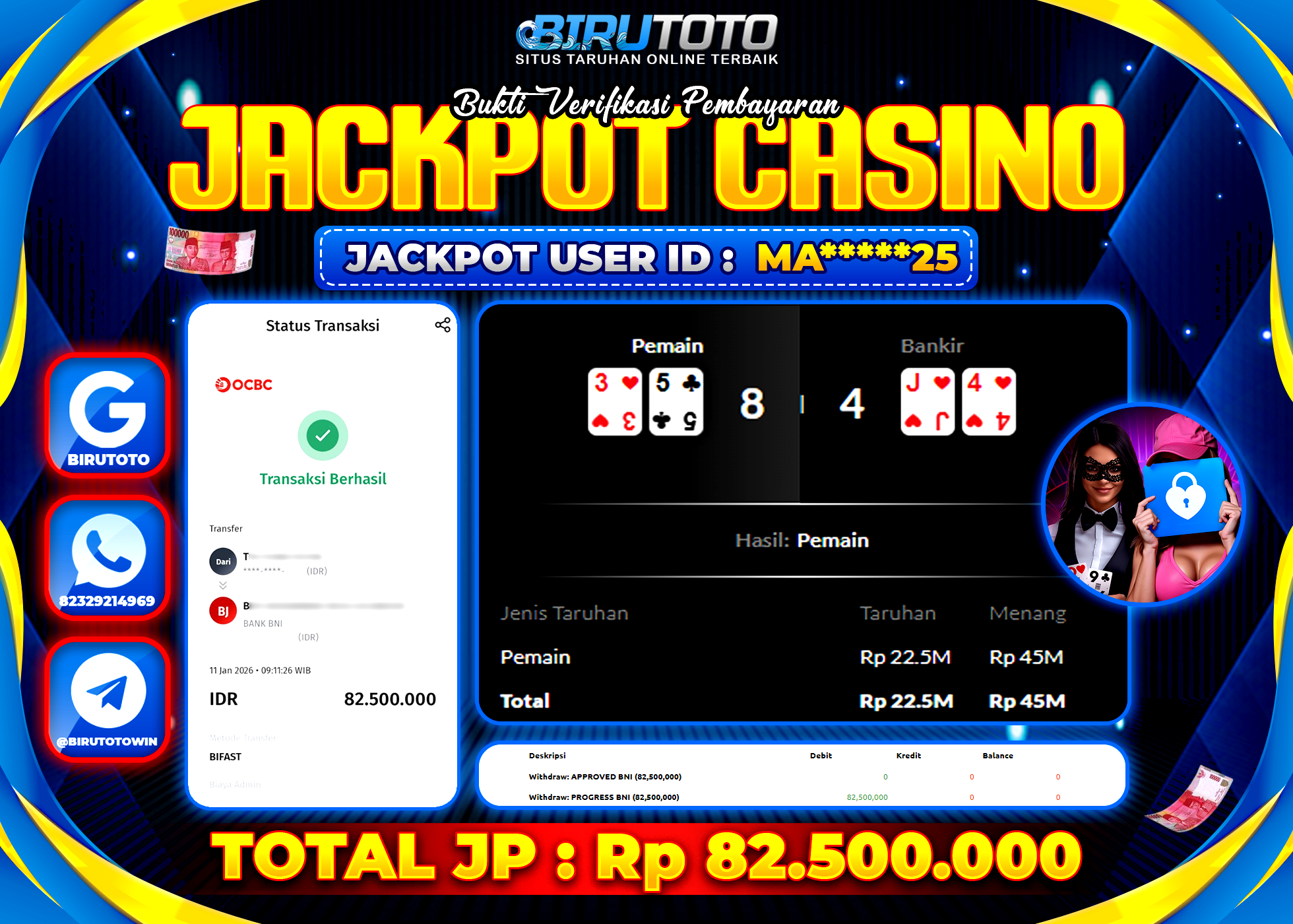 Selamat Kepada Member BIRUTOTO MA**** Telah Jackpot Di LIVE CASINO BACCARAT AFTER DARK