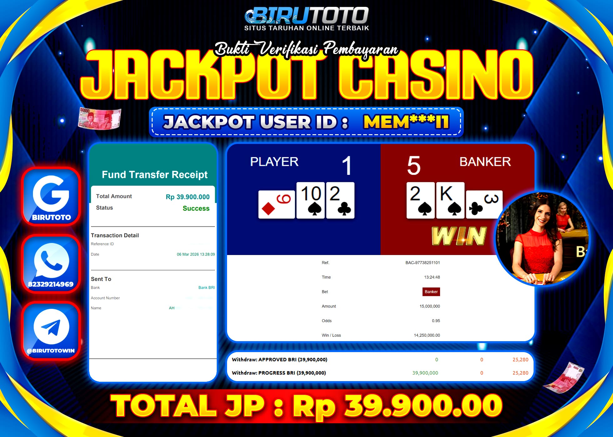 Selamat Kepada Member BIRUTOTO MEM***I1 Telah Jackpot Di LIVE CASINO BACCARAT CLASSIC