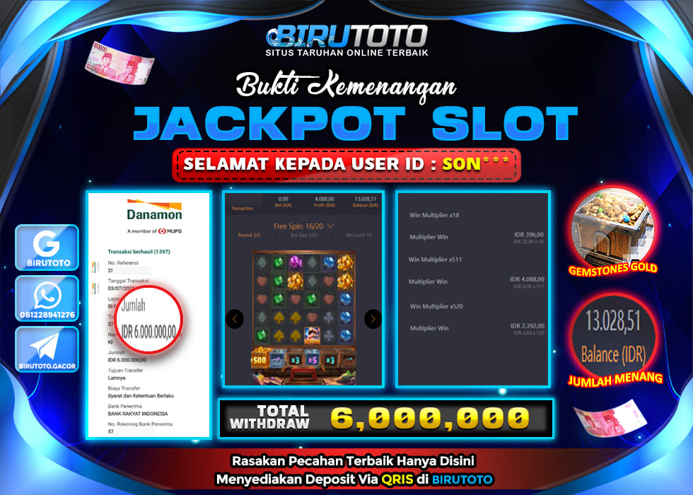 BIRUTOTO JACKPOT SLOT GEMSTONES GOLD Rp.6.000.000 LUNAS