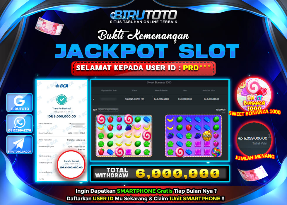 BIRUTOTO JACKPOT SLOT SWEET BONANZA 1000 Rp.6.000.000 LUNAS
