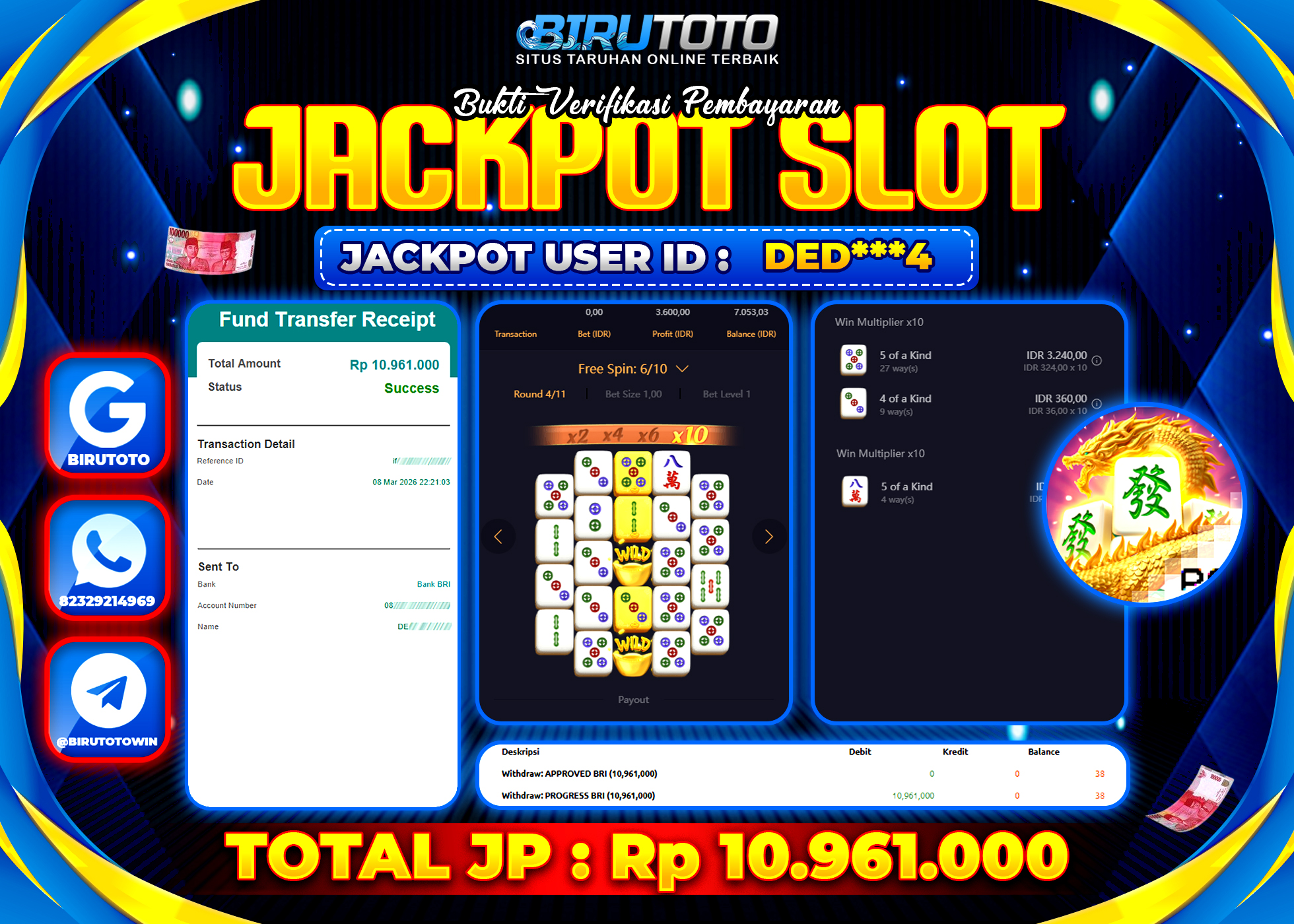 BIRUTOTO JACKPOT SLOT MAHJONG WAYS 2 Rp.10.961.000 LUNAS