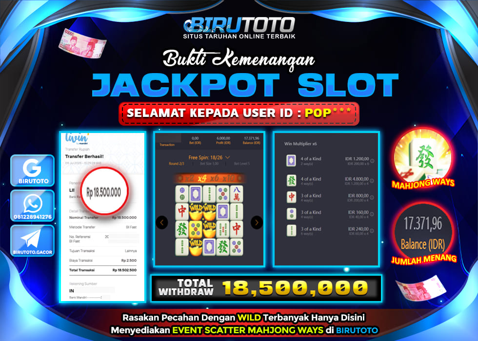 BIRUTOTO JACKPOT SLOT MAHJONG WAYS Rp.18.500.000 LUNAS