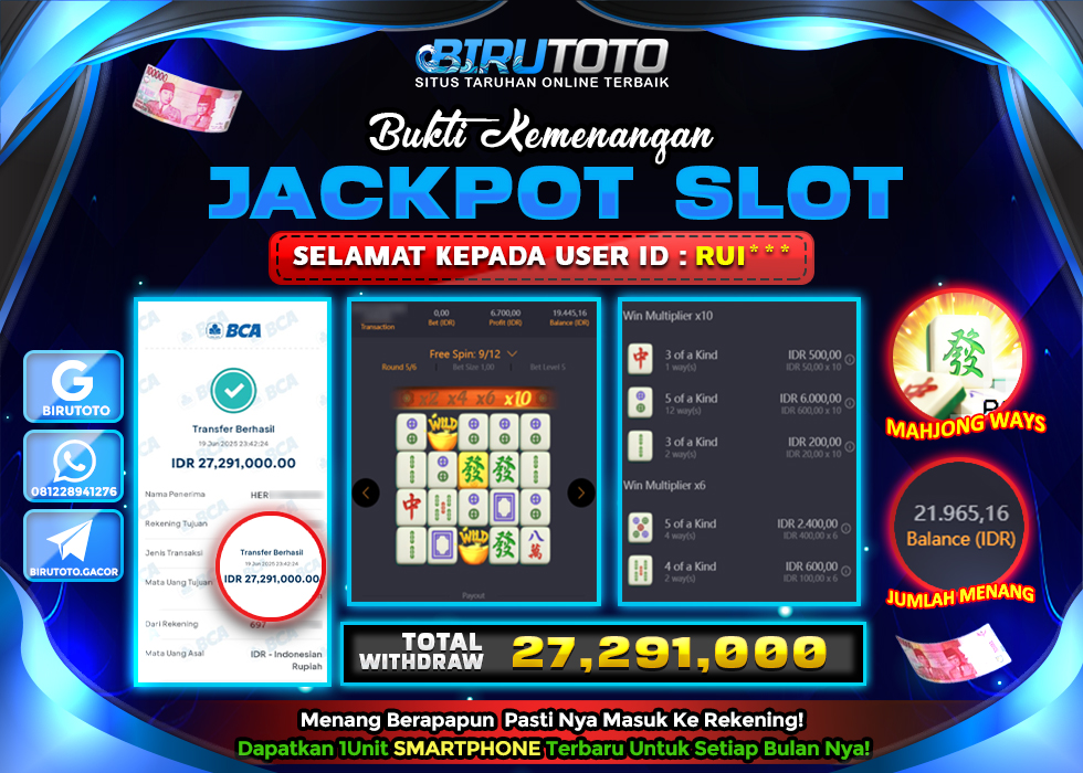 BIRUTOTO JACKPOT SLOT MAHJONG WAYS Rp.27.291.000 LUNAS