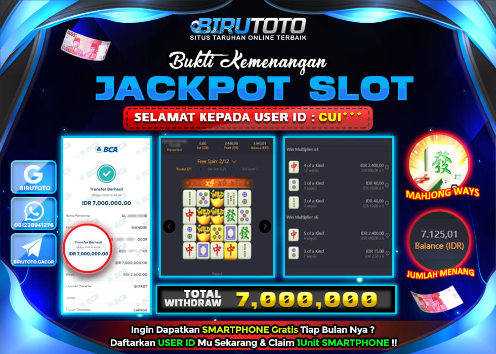 BIRUTOTO JACKPOT SLOT MAHJONG WAYS Rp.7.000.000 LUNAS
