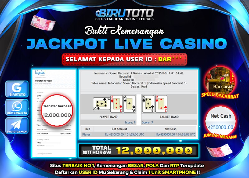 Selamat Kepada Member BIRUTOTO BA**** Telah Jackpot Di LIVE CASINO SPEED BACCARAT