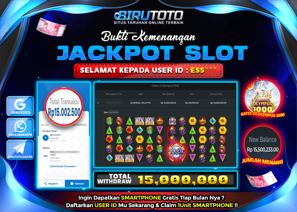 BIRUTOTO JACKPOT SLOT GATES OF OLYMPUS 1000 Rp.15.000.000 LUNAS
