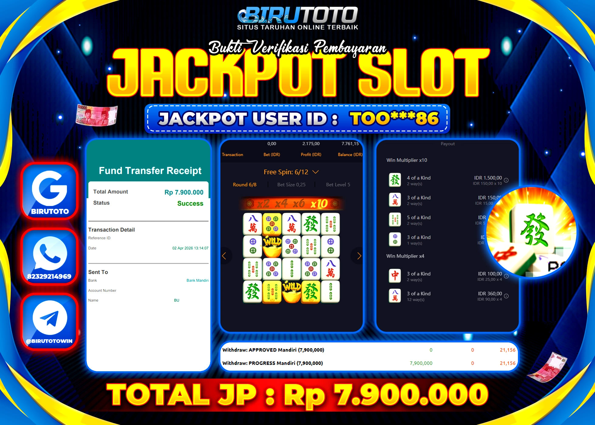 BIRUTOTO JACKPOT SLOT MAHJONG WAYS Rp.7.900.000 LUNAS