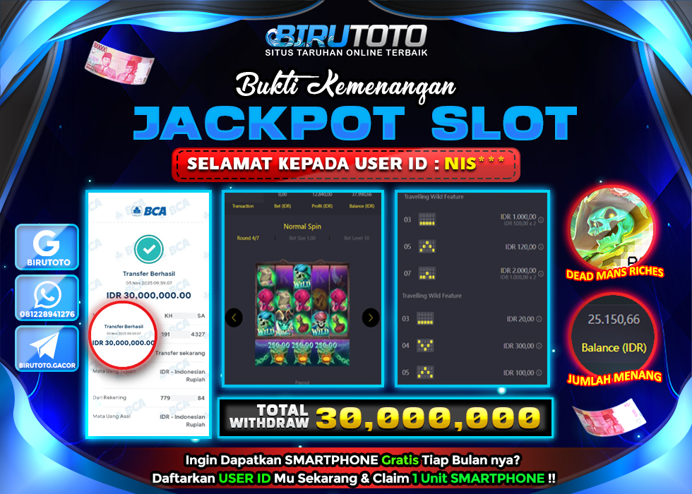 Selamat Kepada Member BIRUTOTO NI**** Telah Jackpot Di SLOT DEAD MANS RICHES