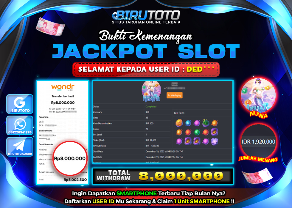 BIRUTOTO JACKPOT SLOT NUWA Rp.8.000.000 LUNAS