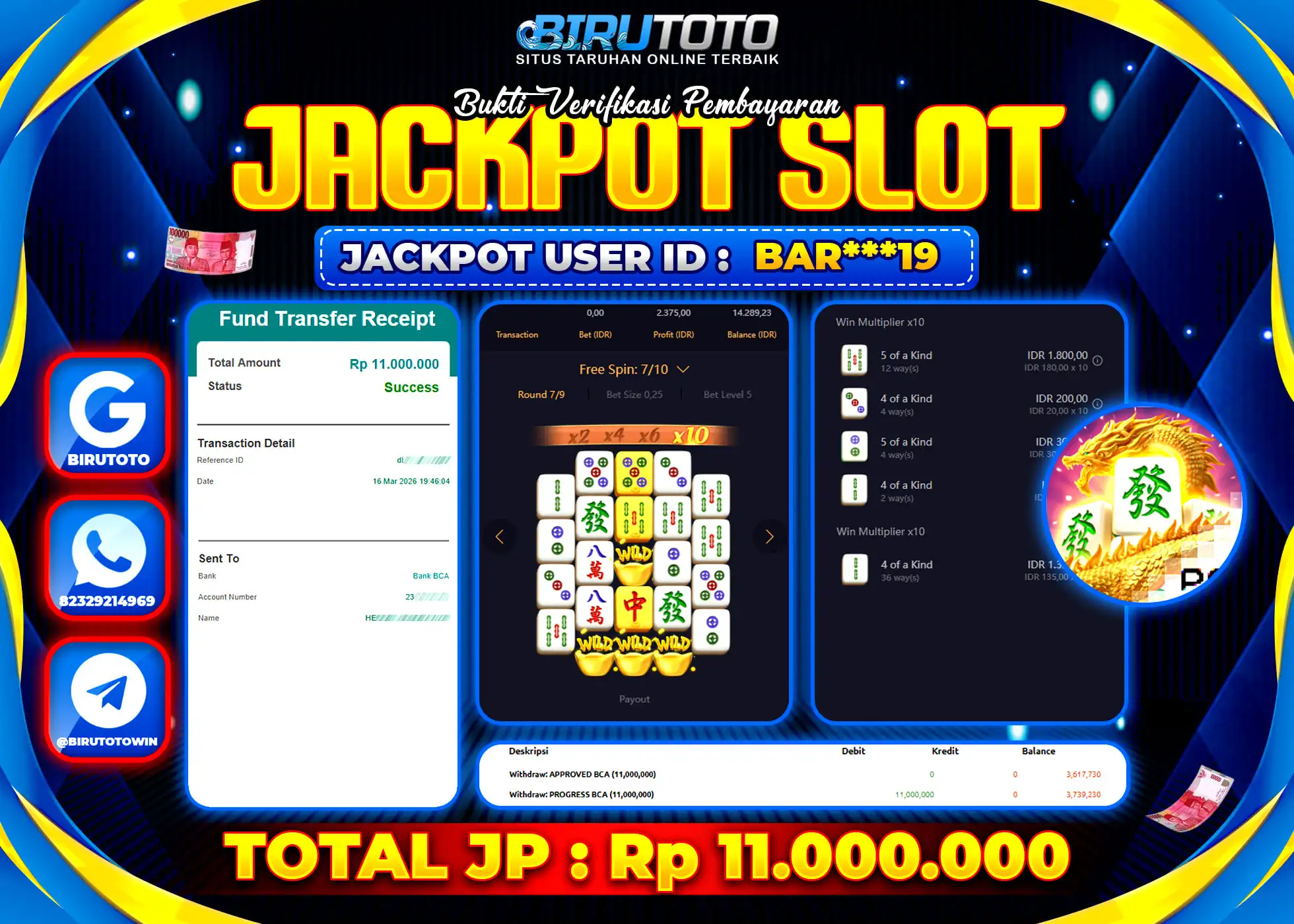 BIRUTOTO JACKPOT SLOT MAHJONG WAYS 2 Rp.11.000.000 LUNAS
