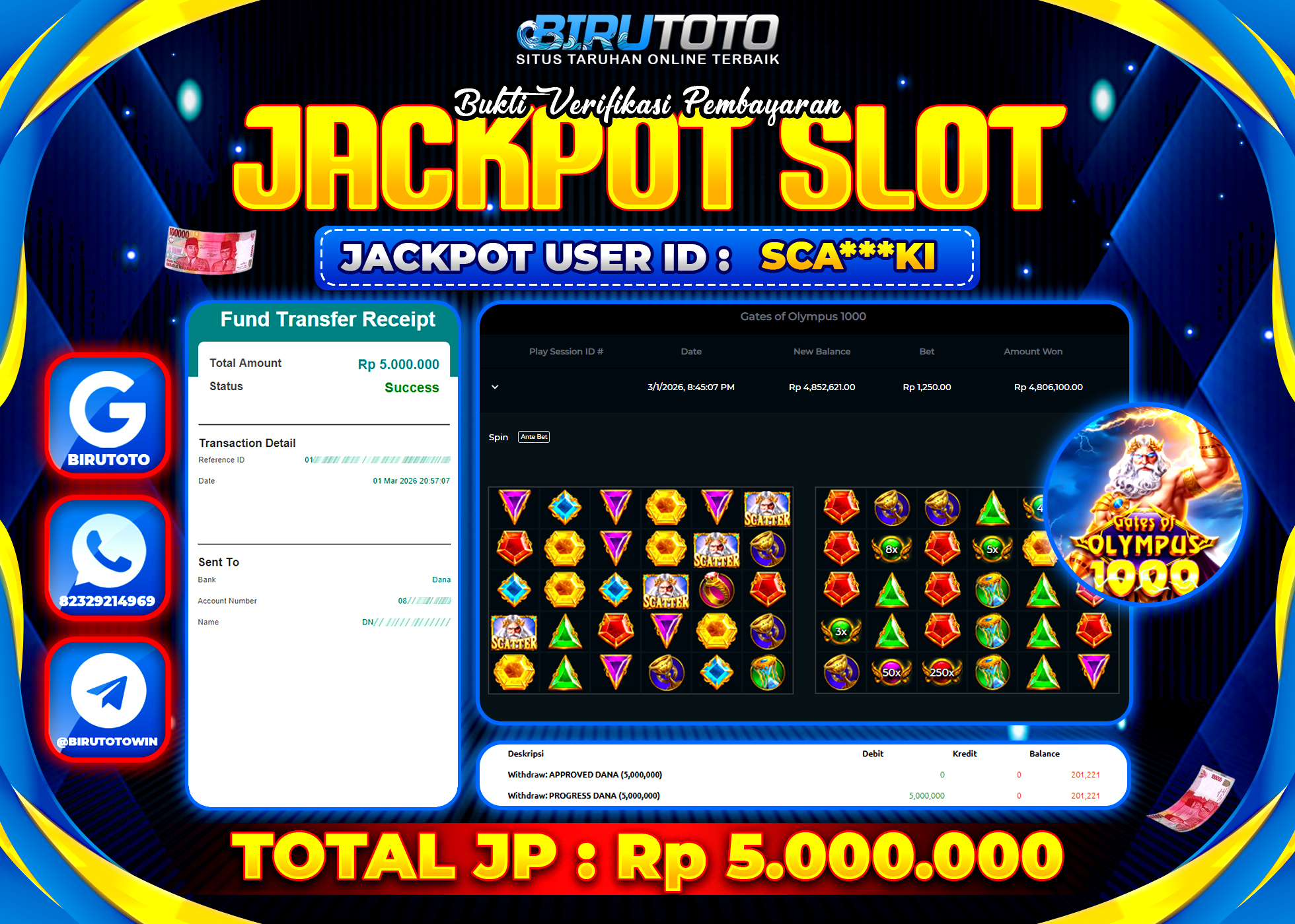 BIRUTOTO JACKPOT SLOT GATES OF OLYMPUS 1000 Rp.5.000.000 LUNAS