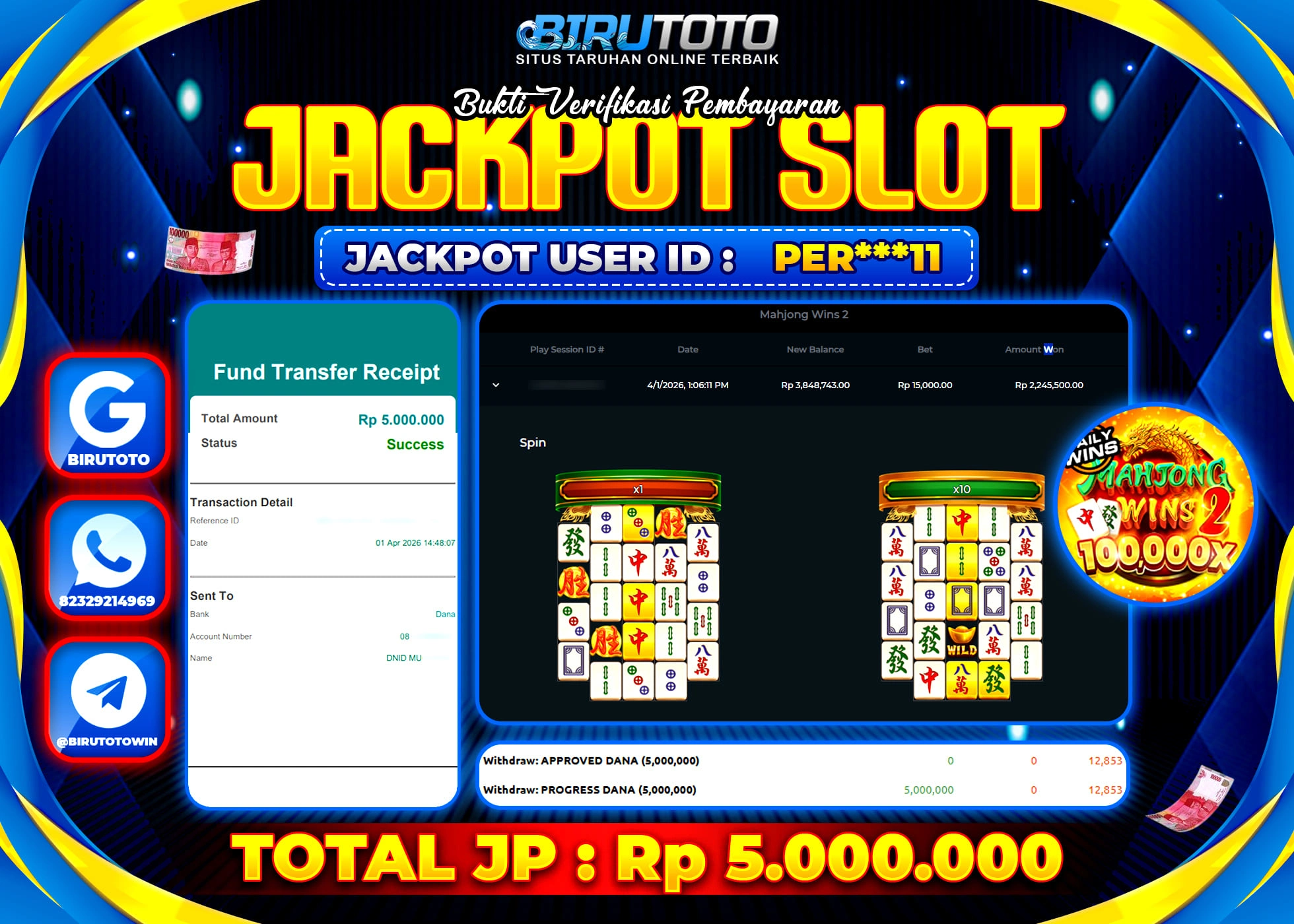 BIRUTOTO JACKPOT SLOT MAHJONG WINS 2 Rp.5.000.000 LUNAS