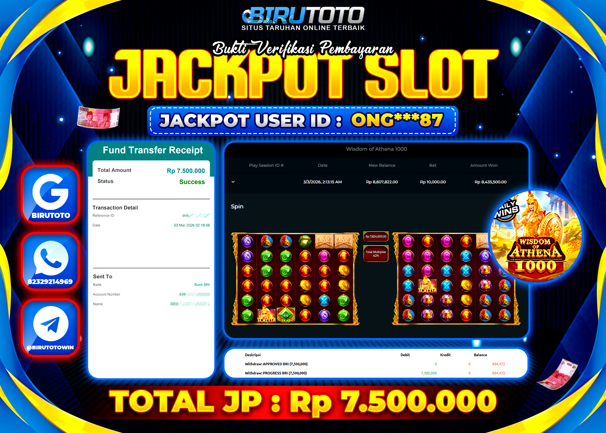 Selamat Kepada Member BIRUTOTO ONG***87 Telah Jackpot Di SLOT WISDOM OF ATHENA 1000