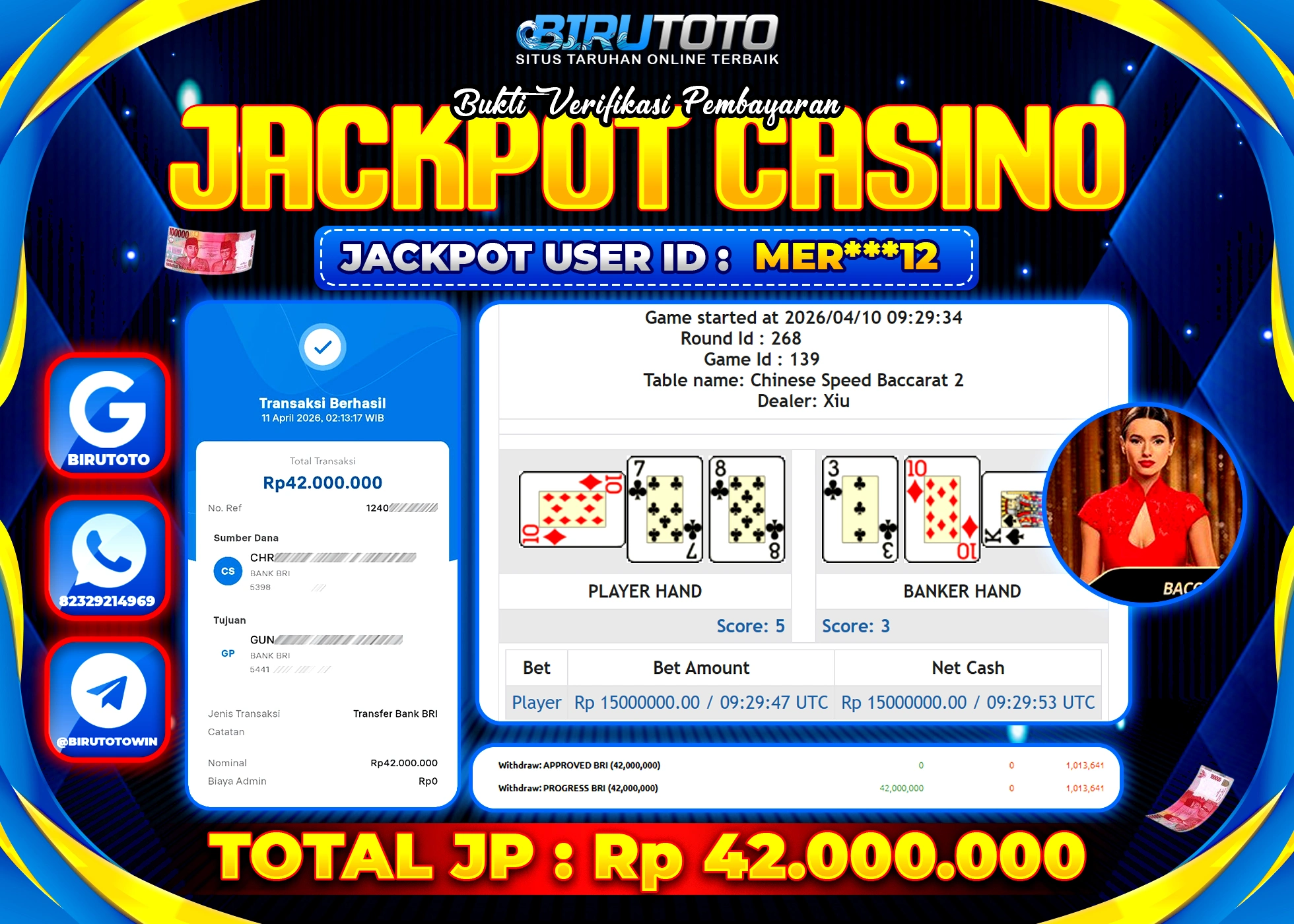 BIRUTOTO JACKPOT LIVE CASINO SPEED BACCARAT Rp.42.000.000 LUNAS