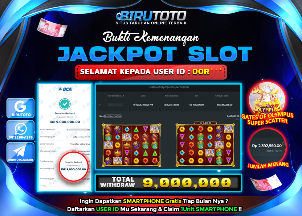 Selamat Kepada Member BIRUTOTO AR**** Telah Jackpot Di SLOT GATES OF OLYMPUS 1000