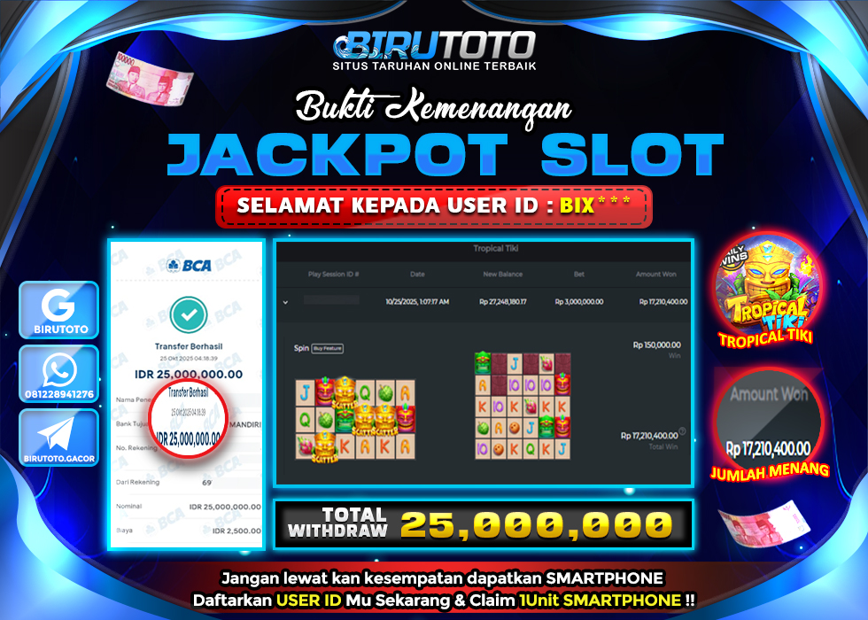 BIRUTOTO JACKPOT SLOT TROPICAL TIKI Rp.25.000.000 LUNAS