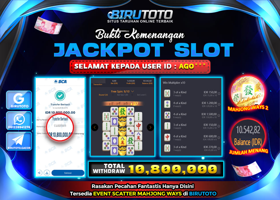 BIRUTOTO JACKPOT SLOT MAHJONG WAYS 2 Rp.10.800.000 LUNAS