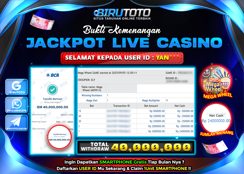 BIRUTOTO JACKPOT LIVE CASINO MEGA WHEEL Rp.40.000.000 LUNAS